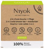 100% Plastikfrei und Naturkosmetik-zertifiziert: Die feste 2 in 1 Dusche von Niyok reinigt die Haut dank milden Natur-Tensiden besonders sanft und spendet dank der speziellen Formulierung